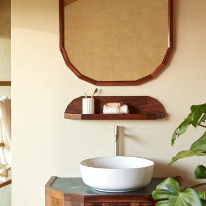 Sheesham is een massieve houtsoort met een opzichtig patroon, ook bekend als Indisch palissander; eventuele onregelmatigheden zijn een garantie voor authenticiteit.