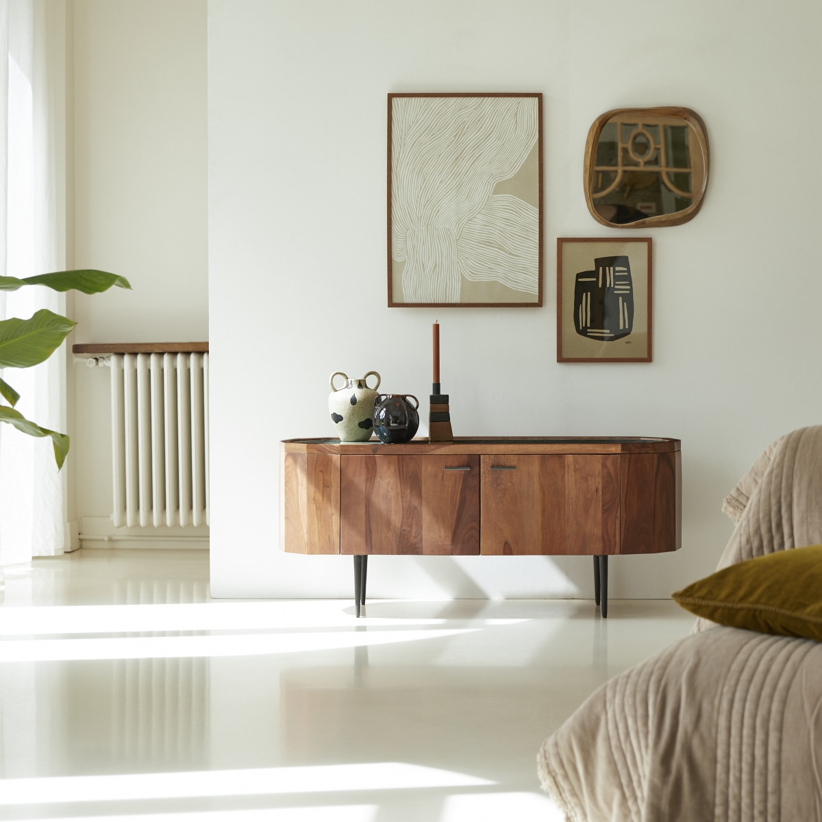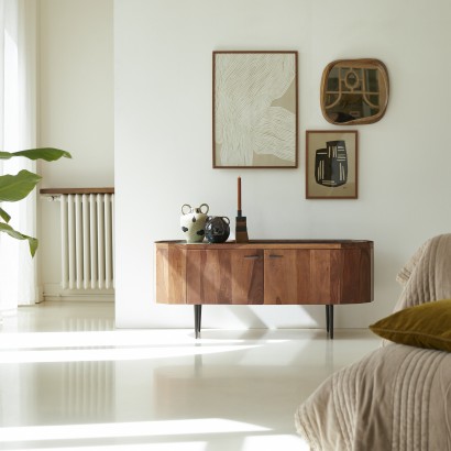 Sheesham is een massieve houtsoort met een rijke nerf en staat ook bekend als Indisch palissander. Eventuele onregelmatigheden in het hout zijn een garantie van echtheid.