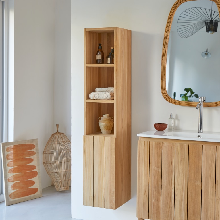 Massief teakhouten hangkolomkast