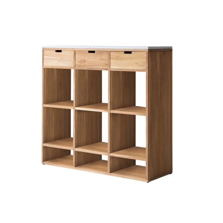 Bijzettafel van teakhout en wit premium terrazzo
