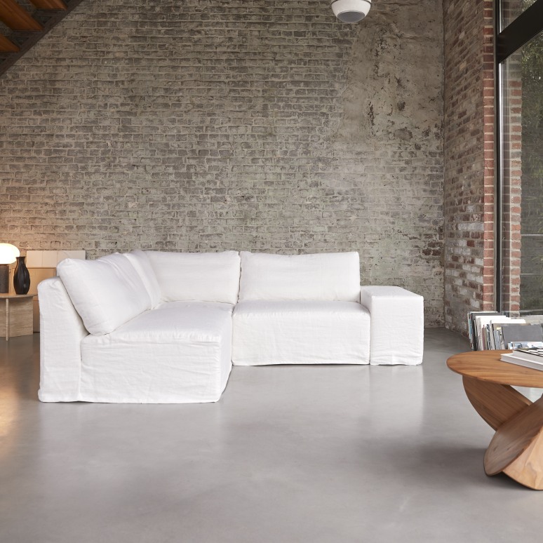 Modulaire 3-zits hoekbank in wit linnen