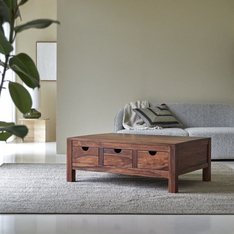 Sheesham is een massieve houtsoort met een rijke nerf en staat ook bekend als Indisch palissander. Eventuele onregelmatigheden in het hout zijn een garantie van echtheid.