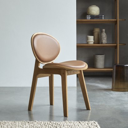 Stoel in massief eikenhout en leer
