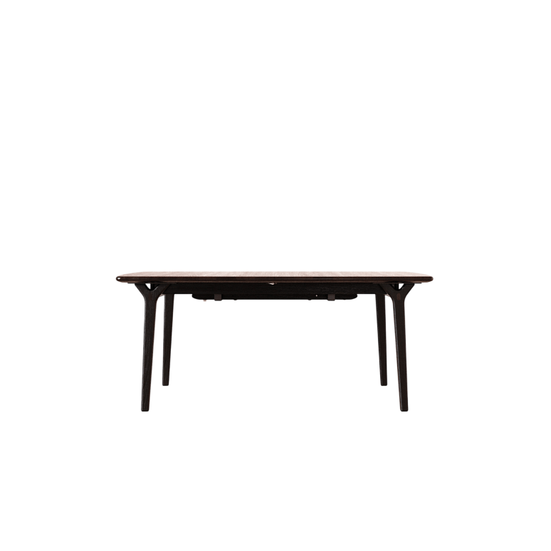 Uitschuifbare tafel in zwart massief eikenhout 6-12 pers.