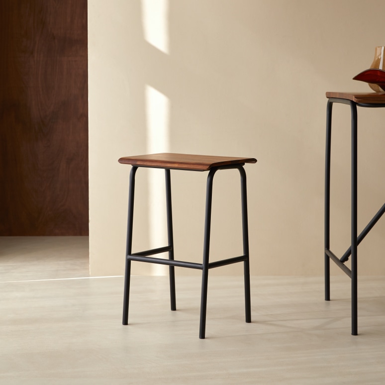 Hoge kruk van massief palissander en metaal