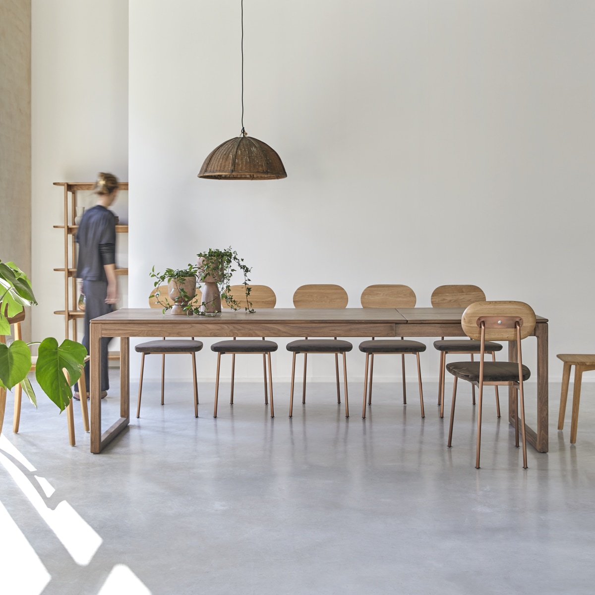 - Premium uitschuifsysteem en verlengblad opgeborgen in de tafel