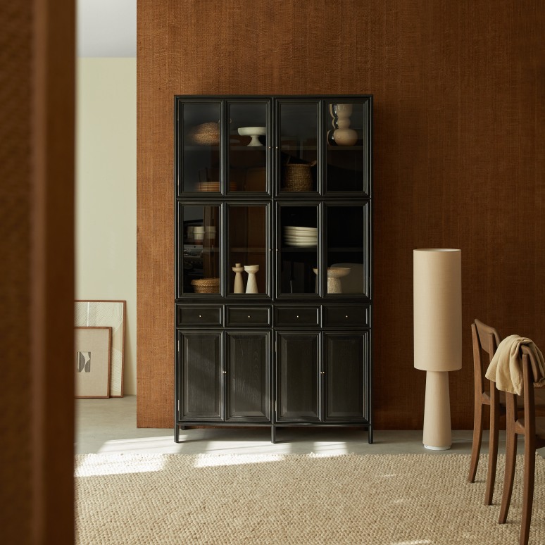 Hoog vitrinebuffet met glazen en gesloten deuren in mindi 120 cm