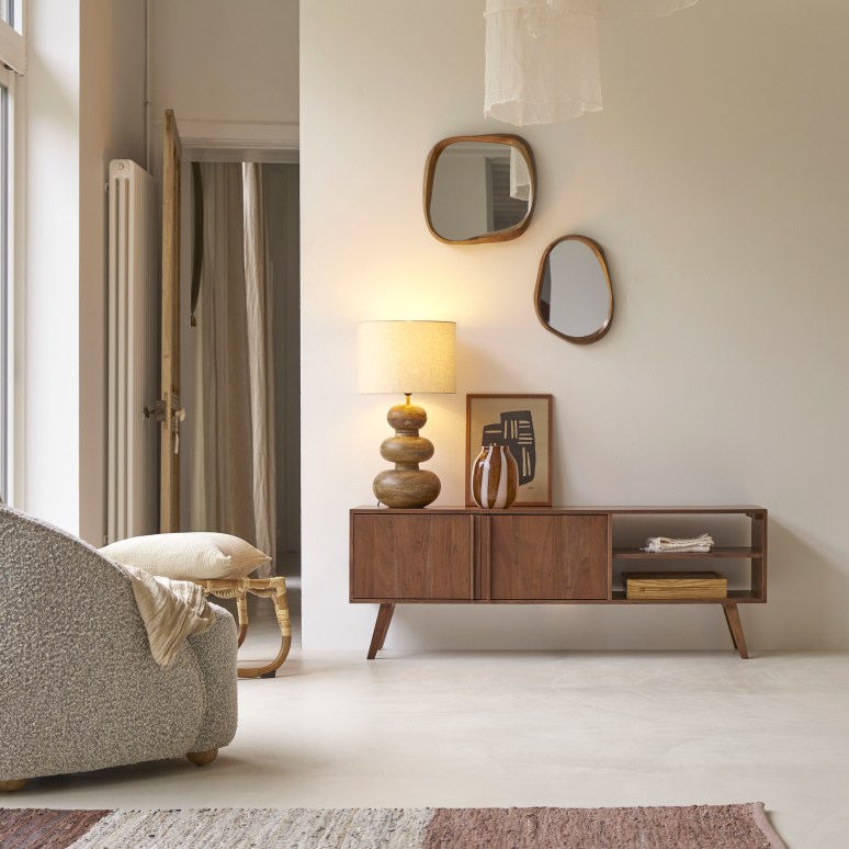 Tv-meubel van massief notenhout en premium terrazzo 175 cm